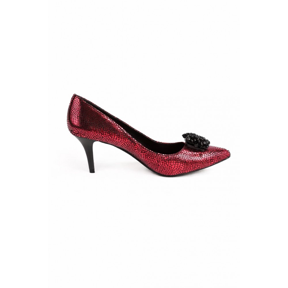 Pantofi eleganti din piele naturala cu textura fina metalizata , toc subtire de 7 cm,sunt expresia rafinamentului si a maiestriei artizanale locale fiind realizati cu grija in Bucuresti. Desingul lor imbina armonios stilul clasic cu detalii moderne, fiind perfecti pentru evenimente speciale sau o seara memorabila