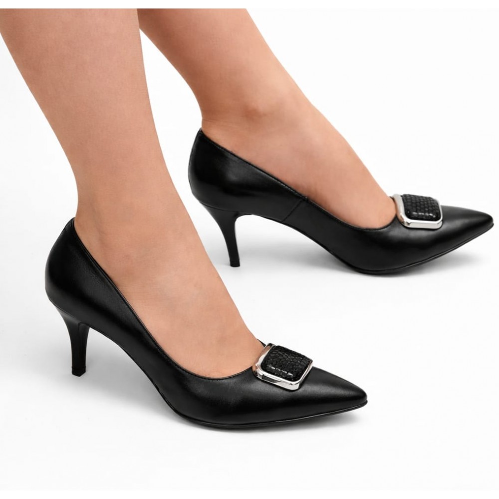 Pantofi dama eleganti din piele naturala- accesoriu frontal cu finisaj argintiu adauga un accent premium si un plus de eleganta transformand acest model intr-o piesa atat pentru tinute office cat si pentru aparatii formale sau business,tocul subtire de 7 cm,stabil ofera confort la purtare si o postura eleganta, ideeal pentru utilizarea zilnica sau evenimente speciale.