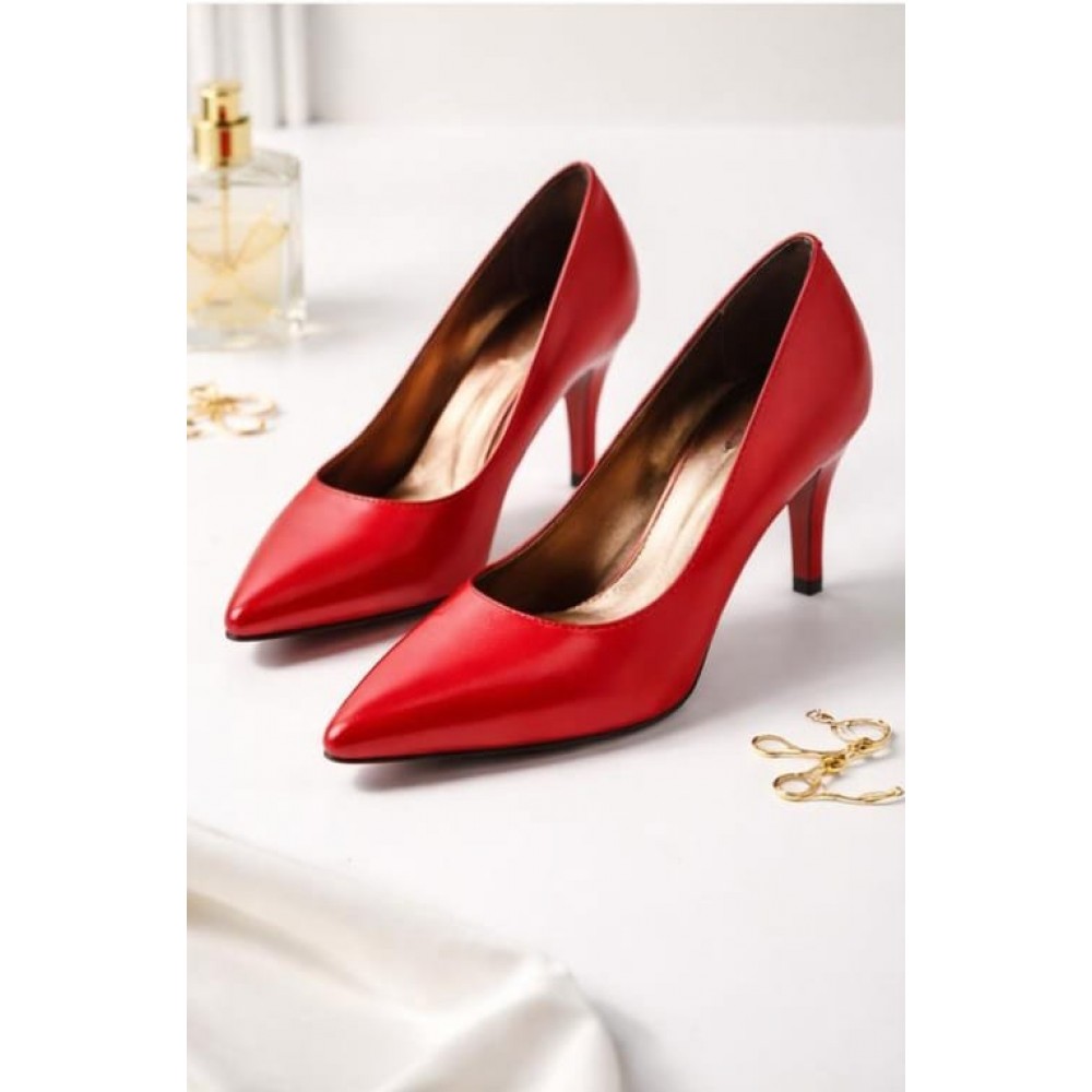 Pantof roșu stiletto cu toc mediu